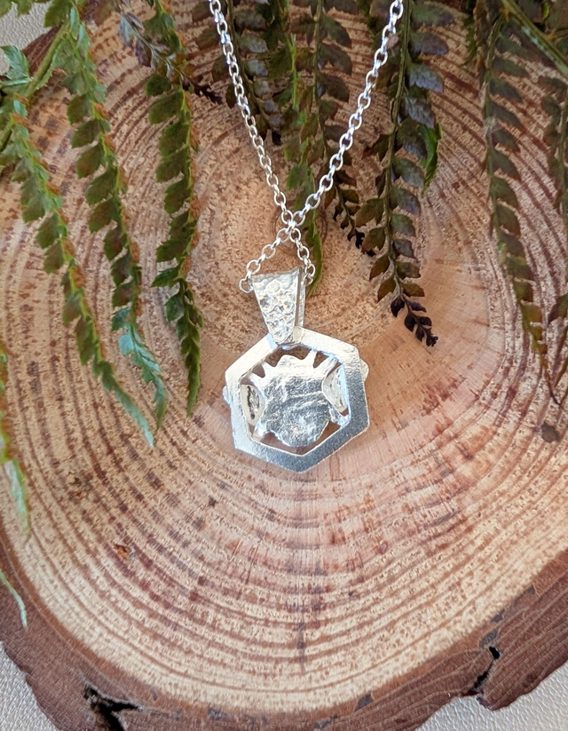 The jewellery is made of 100% recycled silver. Due to the handmade nature of the pieces they will have natural imperfections. It also shows they are handmade and not from a factory. If you have any questions please don't hesitate to contact me.