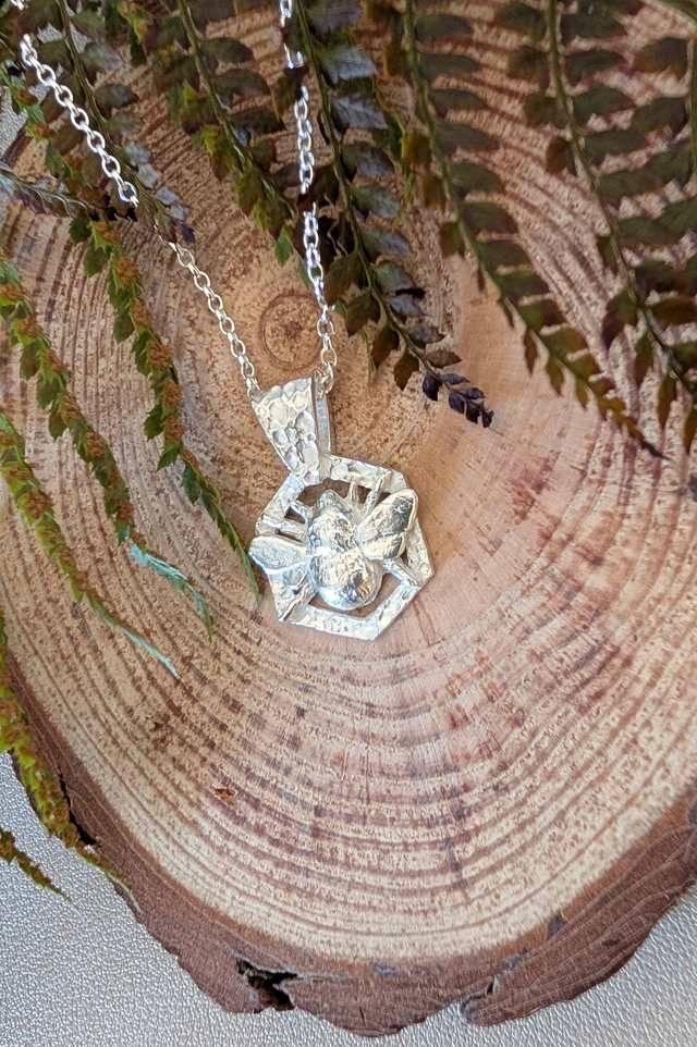 This beautiful Fine Silver bumblebee pendant is 20mm wide x 27mm high.