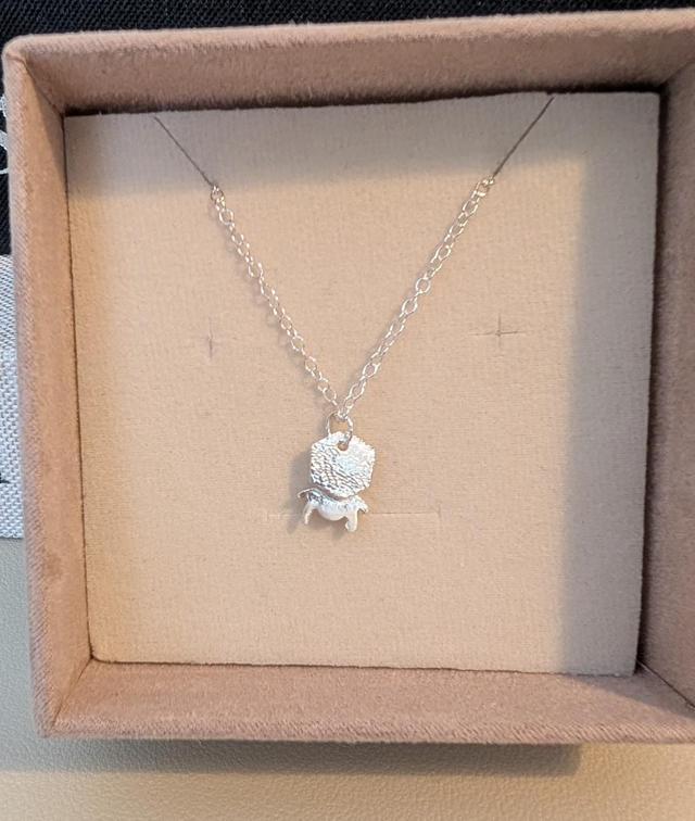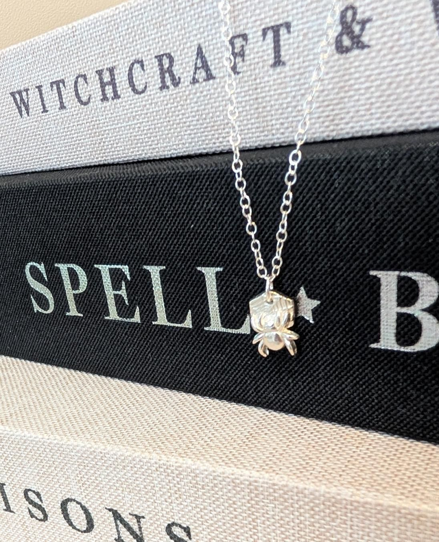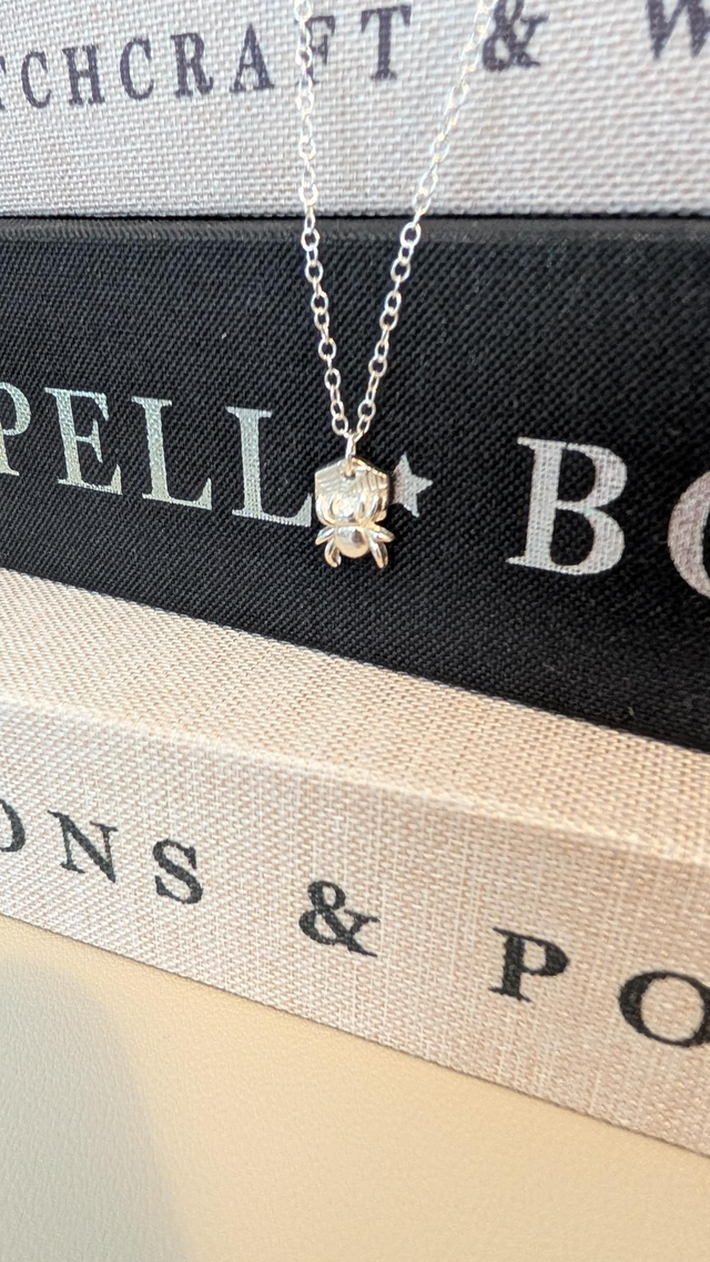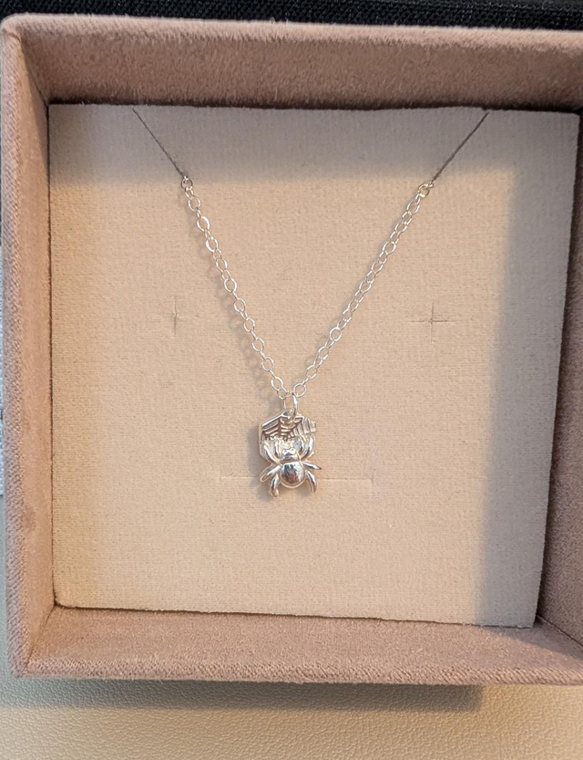 These cute little mini spiders are ready for Halloween! They have a cute little web detail. Pendant is made from Fine silver.