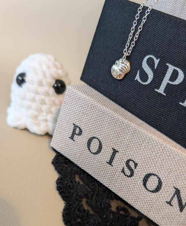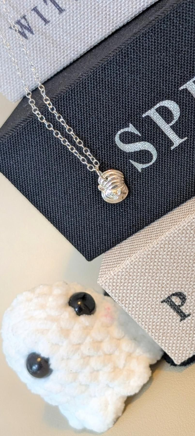 These cute little mini pumpkins are ready for Halloween! They have a cute little magic star detail. Pendant is made from Fine silver.